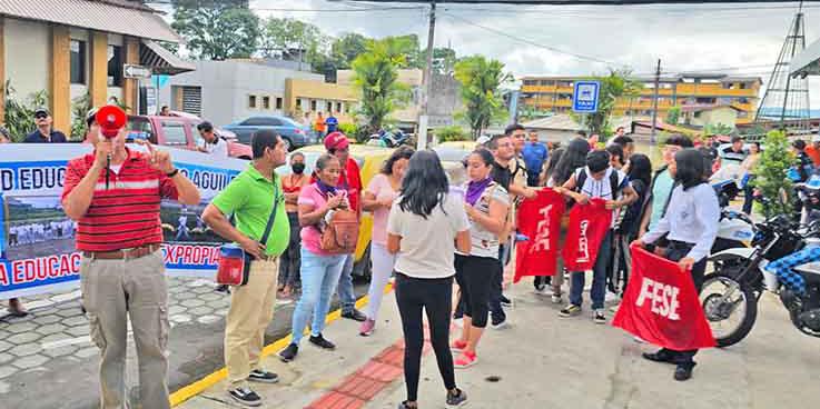 Primero estuvieron en los bajos del Municipio, pero también se movilizaron a los exteriores del Registro de la Propiedad porque a última hora las autoridades decidieron hacer la sesión del concejo en estas instalaciones.