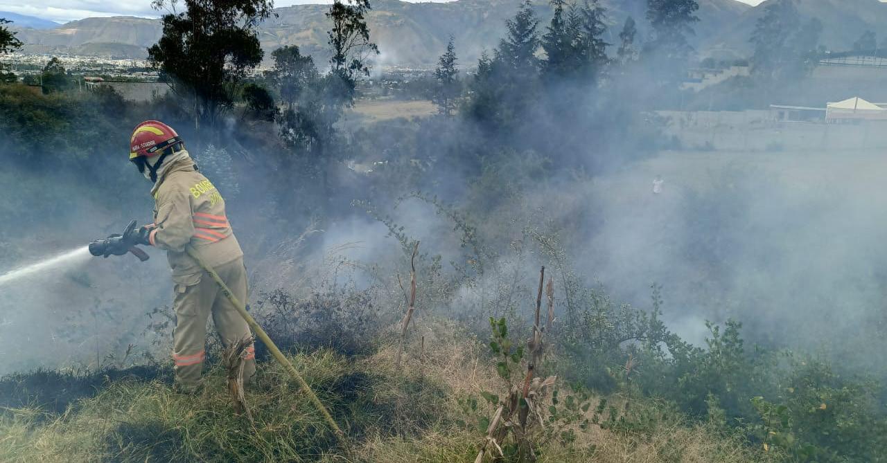 incendios forestales consumen diferentes zonas de Ibarra, capital de la provincia de Imbabura, donde los bomberos a diario ejecutan diversas labores para sofocar los focos que se generan.