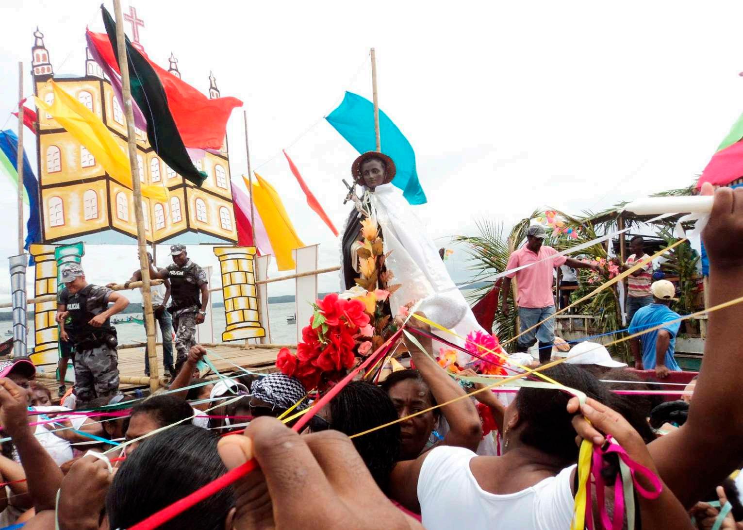 la figura del ‘Santo Negro’, misma que es sacada por sus fieles cada año para realizar una romería por el mar.