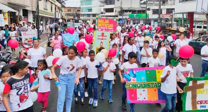 La Iglesia Evangélica Misio nera Ecuatoriana El Salva dor realizó un acompaña miento por las principales calles del cantón Quinindé, Esmeraldas, donde los ciu dadanos creyentes en Dios de diferentes comunidades del cantón participaron del mismo y se dieron cita para efectuar la caminata.