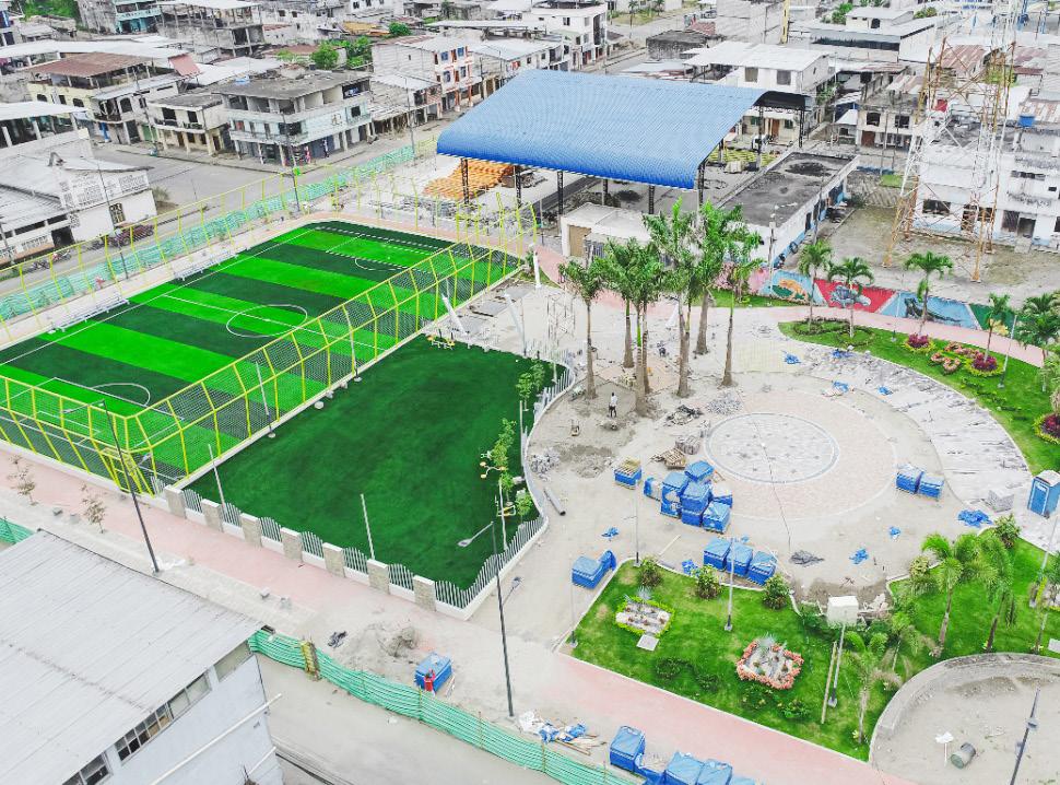 La administración que preside el Alcalde Carlos Barcia Molina se ha pre ocupado por mejorar los espacios públicos como parques y jardines; con trabajos de regeneración urbana este histórico pro yecto se convertirá en uno de los espacios públicos recreativos más modernos de la provincia de Esme raldas, contará con dis tintos escenarios donde nuestros niños y jóvenes podrán practicar distintas