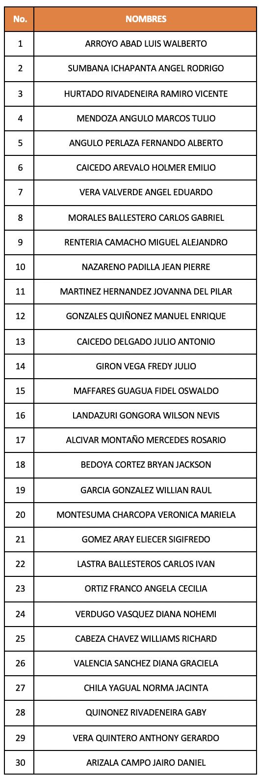 En cumplimiento de lo establecido en el artículo 32, numeral 4 del Reglamento Interno de la Cooperativa de Ahorro y Crédito “Policía Nacional Ltda”, CITO a los socios que se detallan a continuación, comunicándoles que se ha iniciado un Procedimiento Sancionador en su contra, por haber incurrido en la causal establecida en el numeral 2 del artículo 10 del Estatuto Social Por lo que se les otorga el término de 10 días laborables, para que presenten su contestación con los descargos, anuncio de pruebas y correo electrónico para notificaciones, esta deberá ser entregada en la sec retaria del Consejo de Vigilancia ubicada en Edificio Matriz de la Cooperativa en la Avenida 10 de Agosto y Mariana de Jesús de la ciudad de Quito, Provincia de Pichincha, onceavo piso.