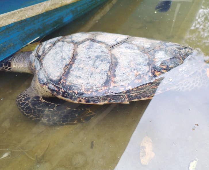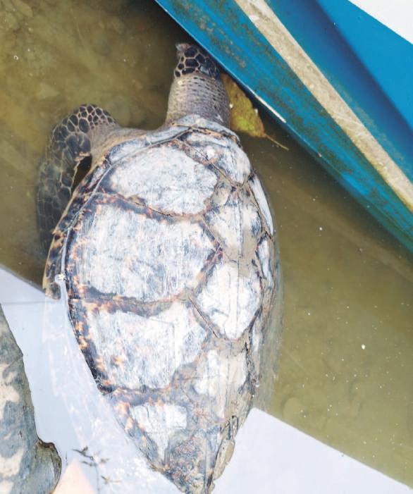 TORTUGAS. Una de las tantas tortugas que sufrió golpes por la pesca incidental.