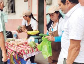 MUJERES. Ofertan sus productos del campo en la calle Sucre y Montalvo.
