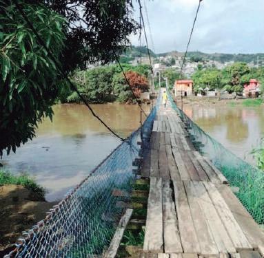 que la gente deba saltar para poder cruzar esos tramos del puente. El puente viejo será reforzado con pasamanos de acero, refuerzo de los pi lotes de acero con hormigón, cemento, además se modifi caran los tableros que repre sentan el trayecto del puente en mal estado por nuevos. La finalidad es que el nuevo puente garantice 20 años de vida asegura Ríos.