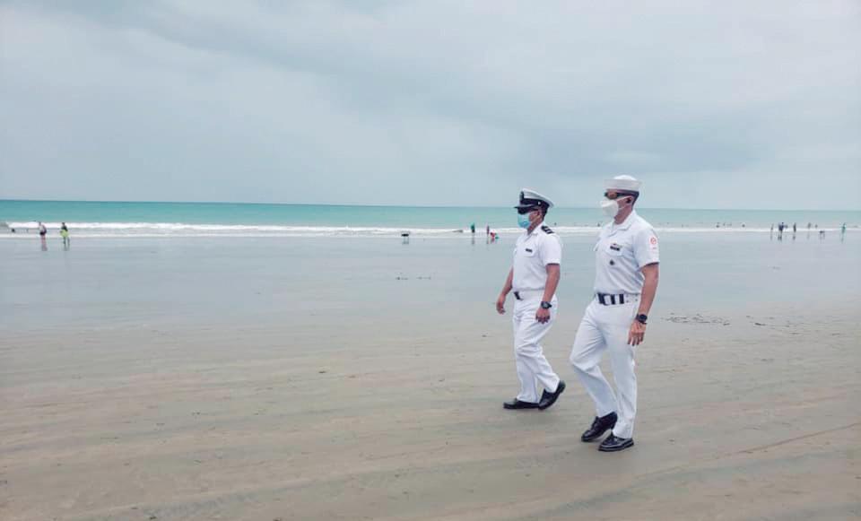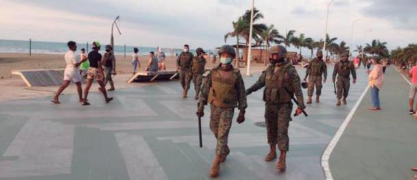 Son pocas las tiendas que siguen abiertas a las 7 de la noche en el centro Esmeraldas.ASÍ lucen la playas de Las Palmas con personal de la marina para que las personas se sientan seguras. SEGURIDAD. Hay policías y militares de guardía las 24 horas al día en las Palmas.