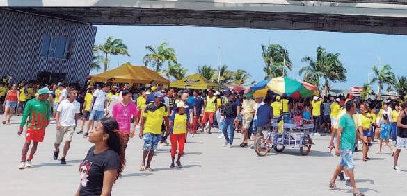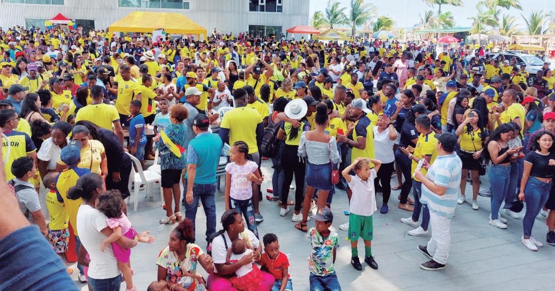 Adultos, jóvenes y niños portaban un identificativo tricolor. Los esmeraldeños se apostaron en sitios estratégicos para alentar al equipo ecuatoriano.