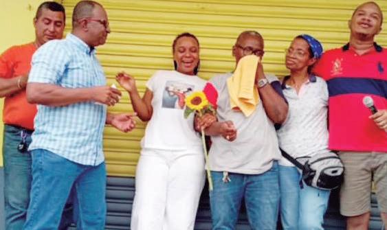 Amigos y familiares recibieron al son de la marimba y con arrullos a Narcisa Mina Grueso funcionaria del Municipio de Eloy Alfaro e hija del ex alcalde de Borbón Richard Mina.FAMILIA. Narcisa en compañia de familiares y amigos. LIBERADA. Narcisa Mina