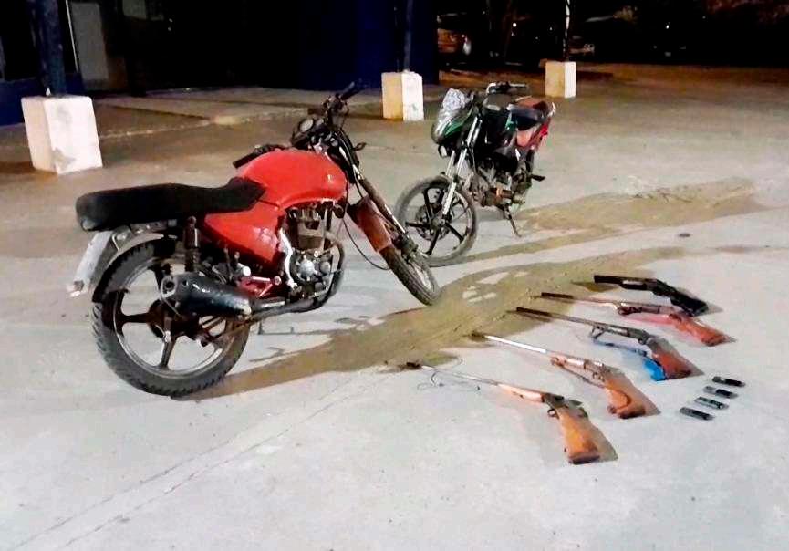 Los delincuentes al ver se acorralados empezaron a disparar por varias ocasio nes en contra de los gendar mes y lograron huir dejando abandonada 2 motocicletas y armas de fuego las que fue ron incautadas y puesta a orden de la autoridad com petente.