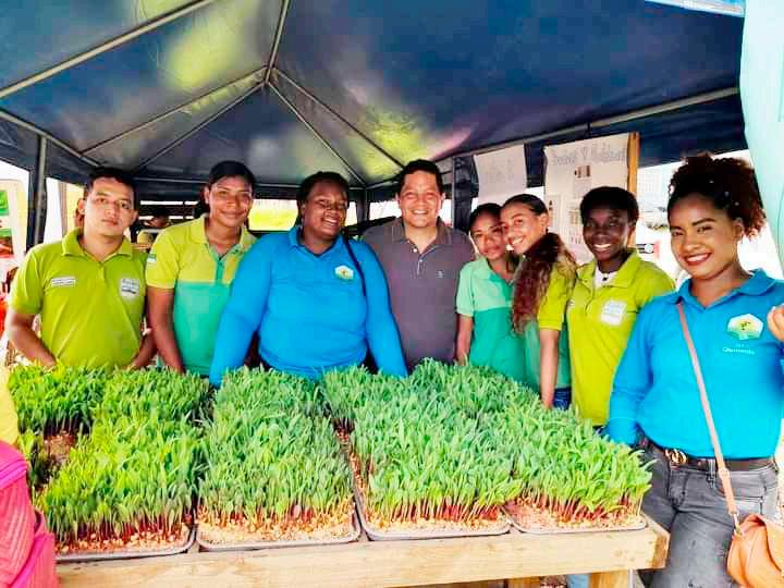 Forraje ve rde hidropóni co fue uno de los proyec tos expuestos que llamó la atención de la ciudadanía, el cual trata sobre el resul tado del proceso de germi nación de granos de cerea les o leguminosas (maíz, sorgo, cebada, trigo, alfal fa etc.) sobre charolas. Se realiza durante un período de 7 a 14 días, captando la energía del sol y asimilan do los minerales de la solu ción nutritiva. Para la pro ducción de Forraje Verde Hidropónico no se utiliza ningún sustrato, solamen te semilla forrajera, charo la forrajera, una solución nutritiva adecuada para la producción del forraje y agua.
