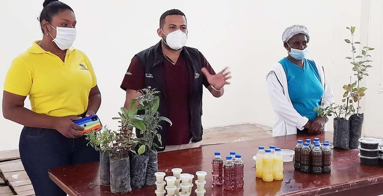 En el huerto de dicho esta blecimient o se entregaron 20 plantas medicinales de diferentes variedades como: menta, yerba buena, calachoa, orégano, parin dera, discalcel, ruda, etc.