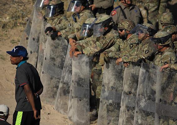 CRISIS. La Guardia Nacional estadounidense refuerza una entrada de migrantes en la frontera con México. EFE los fnes legales correspondientes. Quito, 18 de marzo del 2024. 001-003-4303