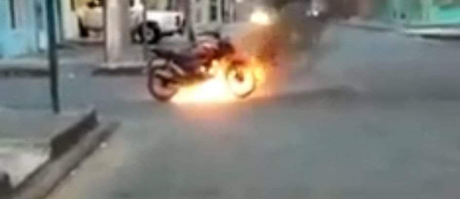 Los habitantes de la coope rativa 19 de Octubre, cantón Buena Fe, cansados de la de lincuencia que azota al país, le echaron fuego, en plena calle, a una motocicleta que pertenecía a presuntos anti sociales, quienes atemoriza ban a los ciudadanos. (DLH)