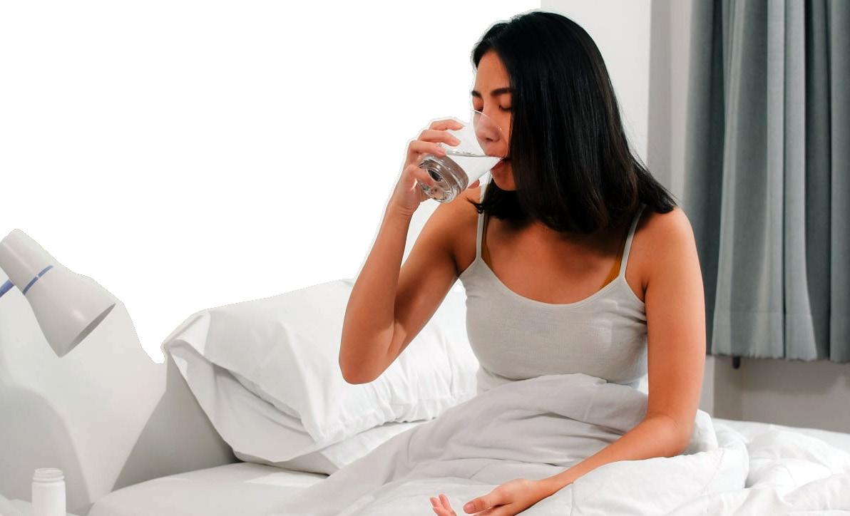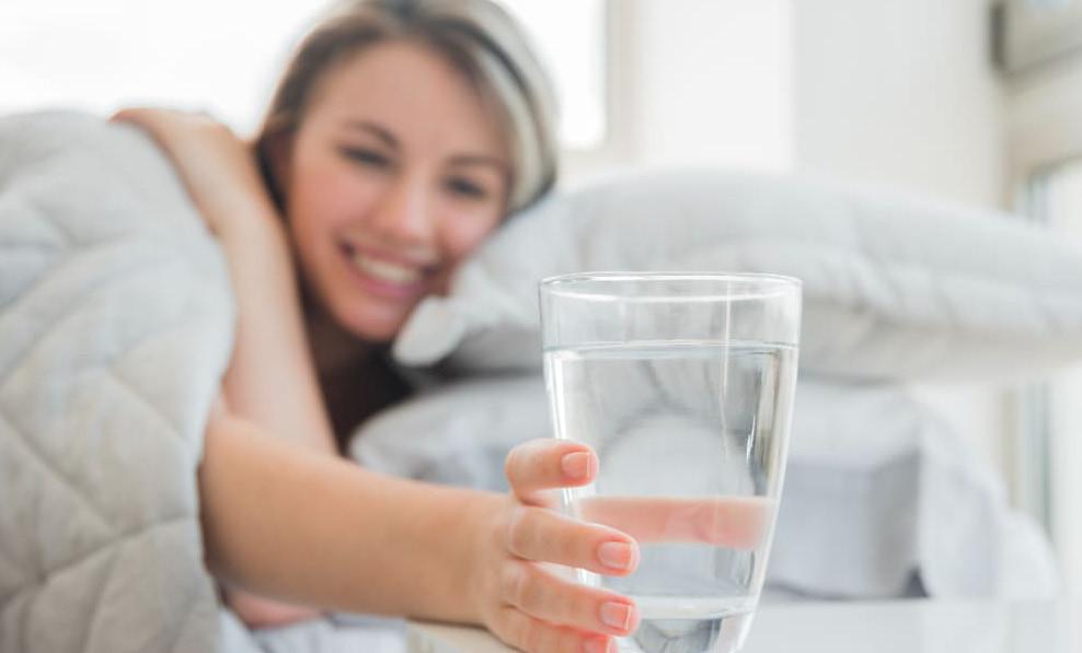 Es más probable que te des piertes hidratado. Cuando estamos deshidratados, nuestro cuerpo es menos eficiente a la hora de re gular la temperatura y po demos sufrir baja energía y fatiga. Beber agua antes de acostarse puede ayudar a prevenir la sequedad de la boca y la garganta, que mu chas personas experimentan cuando están deshidrata das. Si te levantas hidratado, te sentirás con más ener gía y será menos probable que te apetezca el azúcar o la cafeína.