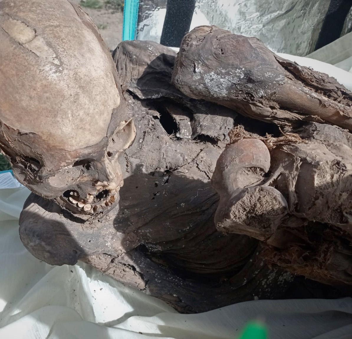 Una momia prehispánica, de entre 600 y 800 años de antigüedad, fue hallada dentro de la mochila de un repartidor de una empresa de reparto a domicilio en la región peruana de Puno, colindante con Bolivia, informaron este 27 de febrero de 2023 fuentes oficiales. el repartidor alegó que guardaba la momia en la casa de sus padres y que la sacó para que sea vista por sus amigos. eFe