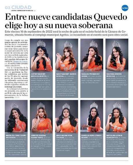 CIUDAD CRONOS SOCIEDAD POLÍTICA PAÍS ECONOMÍA www.lahora.com.ec LA HORA ecuador lahoralosrios @LaHoraLosRios @lahoralosriosec diario La Hora lahora.ec
