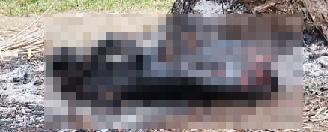 de palma africana, una es calofriante escena. Fue ha llado el cadáver de una per sona incinerada, sin cabeza y atada de pies y manos.