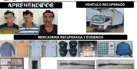 camión oculto entre la maleza, con una parte de la mercadería. En ese ins tante se procedió a la apre hensión de tres personas que custodiaban el vehículo, a pocos metros estaba una vivienda (propiedad de uno de los detenidos) donde se encontraron más produc tos; la llave de encendido; documentos personales de la víctima, es decir, el chofer y dos armas de fuego tipo escopeta. A los sujetos se los identificó como Oliver Ch., de 52 años de edad; Bolívar S., 32; y Andrés S., 46. (DLH)