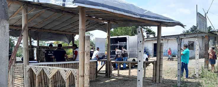 Sobre el terreno, se pudo observar este 4 de octubre de 2022 a cientos de mi grantes que se bañaban, otros sentados bajo unas gradas y una cancha techa