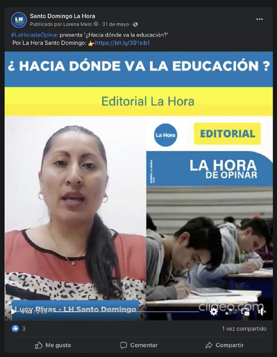 Incluye datos estadísti cos, videos testimoniales e infografías, insumos que se constituyen en un lla mado a la acción a la po blación para que genere conciencia sobre la proble mática que se vincula con la violencia intrafamiliar, y que ha cobrado la vida de varias mujeres, las cuales en su debido tiempo no sa bían donde recurrir.