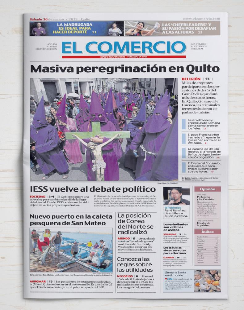 fico. Así este ‘Fantasma’ les cayó del cielo a la pandilla y armaron todo un paquete de entrega de frecuencias con el condicionamiento que adquiera también el Diario El Comercio pese a su ninguna experiencia en medios escritos y más, en un país que según registros públicos jamás había conocido. El Diario por la persecución y la crisis estaba en venta. La persecución a todos los medios le causó daños colaterales con la prohibición total de todo tipo de publicidad oficial extorsionando inclusive al sector privado, impedimento de impresiones voluminosas, salarios sectoriales triplicados, régimen laboral de excepción, limitaciones de operaciones comerciales colaterales, provocaron que pese a la posición digna y tradicional del medio y especialmente de su Directora cause el derrumbamiento financiero y la baja de utilidades con lo que el frente interno accionario concluyó que había que vender.