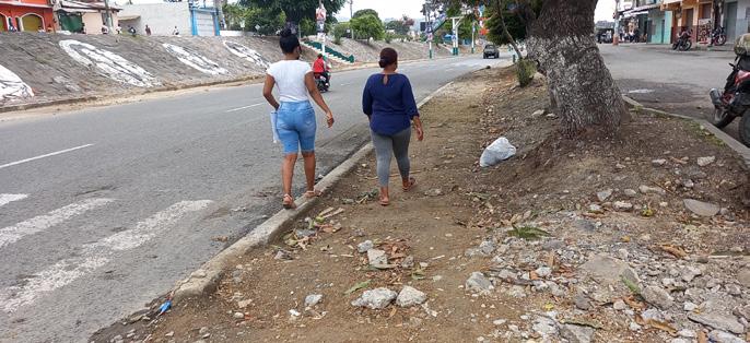 Veredas de tierra Lo que hace tiempo atrás eran veredas de hormigón en la actualidad son veredas de tierra ¿Era necesario dañar algo que estaba para dejar abandonada la obra? Se pregunta Lorena García quien en ese momento pasaba por el lugar para llegar a la parada a esperar el transporte público.