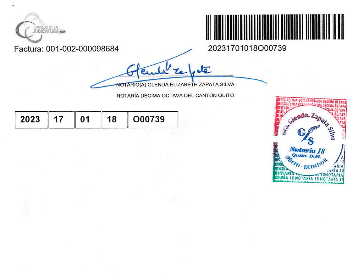 ticuatro de mayo del dos mil veintitrés, ante la suscrita Notaria Décima Octava del Cantón Quito, Doctora GLENDA