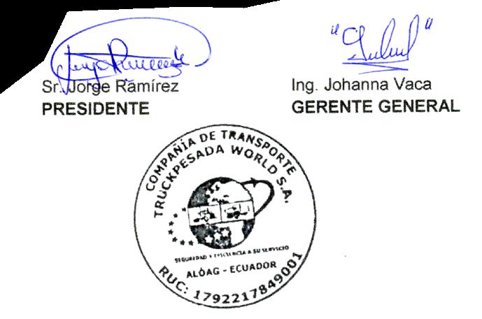 Debidamente facultado en convocar a Junta General Extraordinaria de Accionistas de la Compañía TRUCKPESADA WORLD S.A., a celebrarse el día Viernes 10 de Febrero de 2023 a las 15:00 PM en la sede social de la compañía, que está ubicada en la Calle Lucinda Toledo y Fernando Castro # 037 una cuadra atrás del parque central de Alóag, barrio Sur, para tratar el siguiente orden del día: