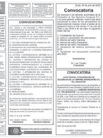 Se cita de manera especial a los Comisarios Sr. Eduardo Tenenaula y la Sra. María Laica. Nota: Los estados financieros se encuentran a disposición en la oficina de la Compañía. Al tratarse de una segunda convocatoria, la junta se celebrará con los accionistas que estén presentes.