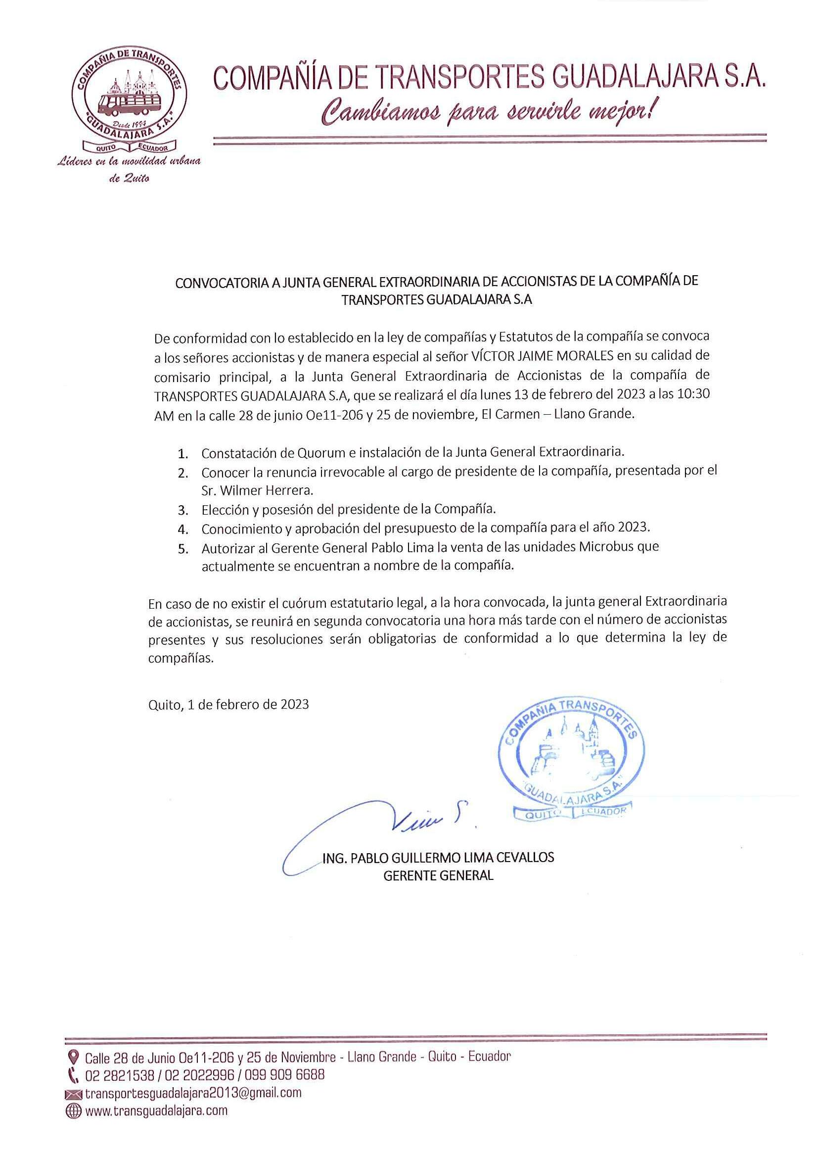 FECHA Y NOTARIA: 23 de enero del 2023, con número de protocolo 20231701027P00084, ante la NOTARIA VIGÉSIMA SÉPTIMA DEL CANTÓN QUITO Doctora Mónica Elizabeth Maldonado Nieto.-
