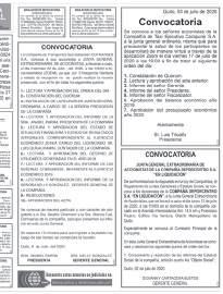 Nota: Se convoca de manera especial e individualizada a los señores comisarios: señor Pozo Salas Galo Hernan comisario principal, titular de la cedula de ciudadanía N° 1710886159, y la señora Faican Ramirez Katerine comisaria alterna, titular de la cedula de ciudadanía N° 1712857984.