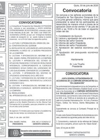 Se convoca a todos los accionistas y directivos de la Compañía de Taxis Convencional Aéreo La Victoria Tours Taxalavitours S.A., a la Junta General Ordinaria Universal de Accionistas, con el carácter obligatorio, la misma que se realizará, el día martes 13 de junio del 2023 a las 16:H00, en su local ubicado Calle Av. Quito s/n Oswaldo Medrano, del Distrito Metropolitano de Quito, para tratar y resolver el siguiente orden del día.