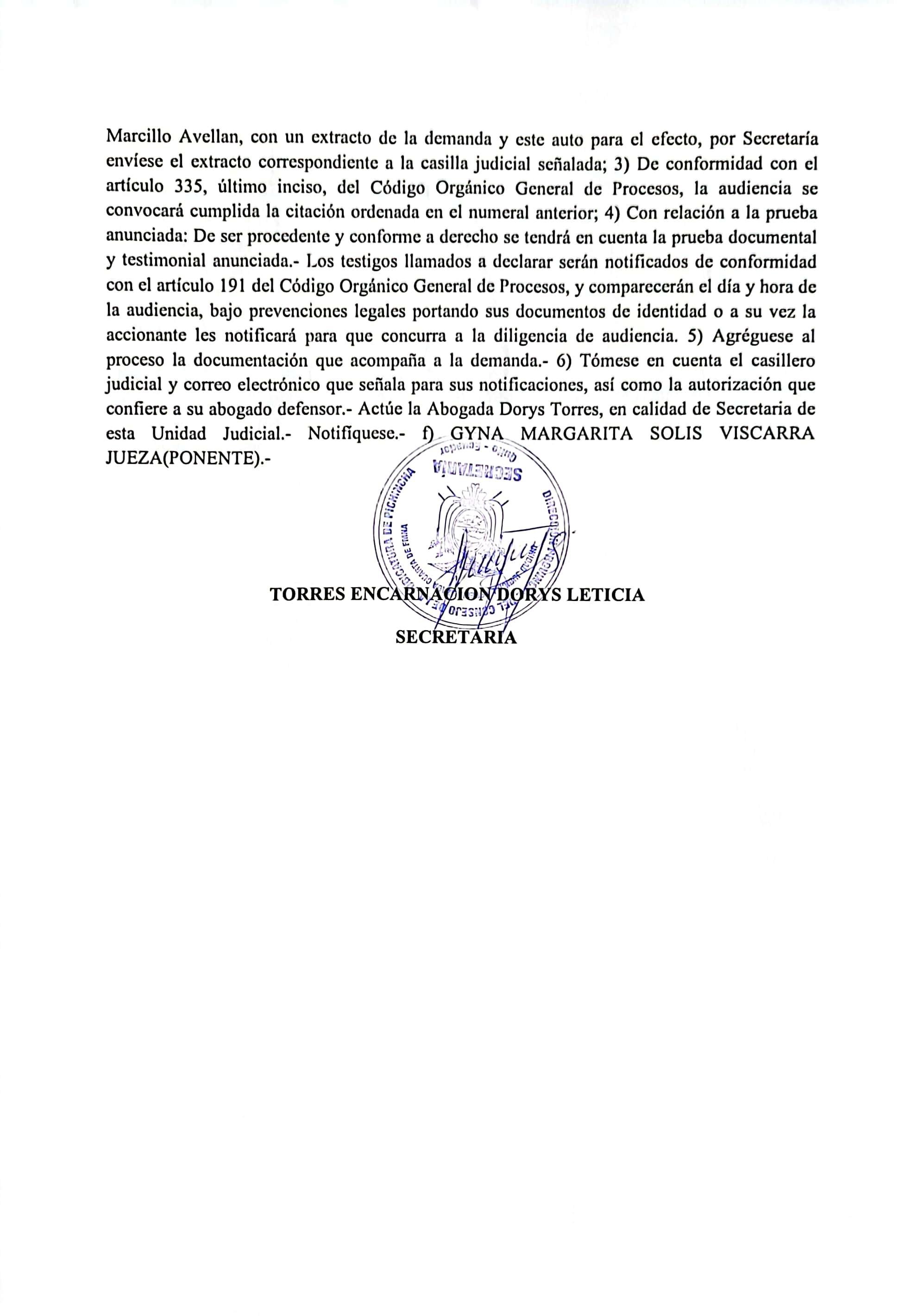 En cuanto al anuncio de prueba realizado por la parte actora, esta se tendrá en cuenta en el momento procesal oportuno y de ser procedente.[3.2] Agréguese a los autos los documentos que se acompañan a la demanda.- [4] Notificaciones: En aplicación de la Resolución 102-2023 emitida por el Pleno del Consejo de la Judicatura, en observancia al principio de austeridad del servicio público y reingeniería institucional, en concordancia con el Art. 66 del Código Orgánico General de Procesos, el presente auto es notificado a las partes procesales en los Casilleros Judiciales Electrónicos, de sus defensores técnicos, como también en los correos electrónicos (defensor / partes procesales) que han señalado dentro de la presente causa, para los fines pertinentes. Se recuerda a las partes procesales y defensores técnicos, que de ser necesario, procedan a realizar la actualización del lugar donde recibirán sus notificaciones electrónicas.- Actúe la Dra. Adriana Arias Arcentales, en calidad de secretaria de esta Unidad Judicial.- CUMPLASE Y NOTIFIQUESE.APOLO ALMEIDA ANA ALEXANDRA JUEZA (PONENTE).