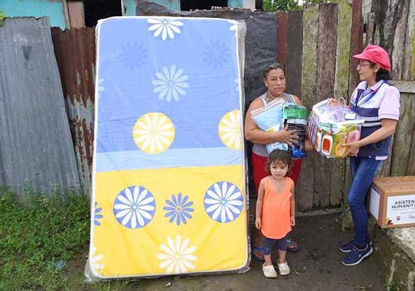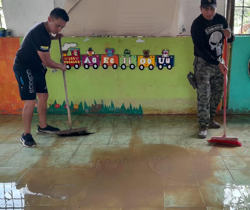 ° Las fuertes lluvias que se registraron estos últimos días en Santo Domingo dejaron a varias familias afectadas por inundaciones. Organismos de ayuda social se han unido para entregar kits de asistencia humanitaria. Uno de los lugares con mayor problema es la cooperativa El Proletariado donde se ayudó a 20 familias. (CT)