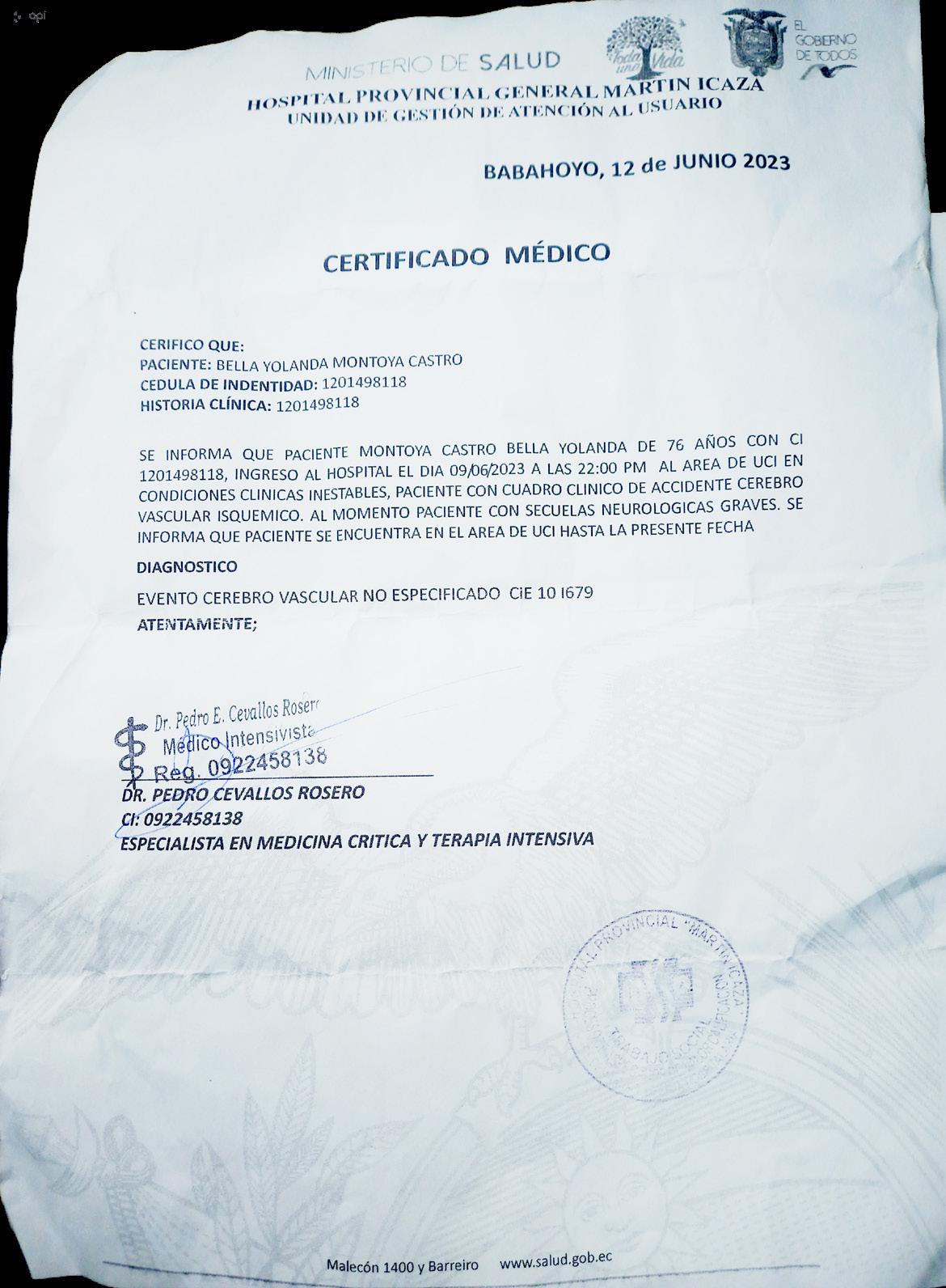 Por pérdida de certificado de inversión Nro. 001000080009736002