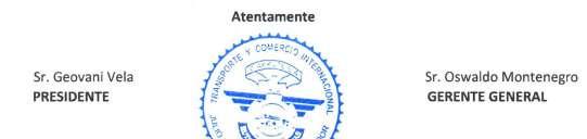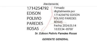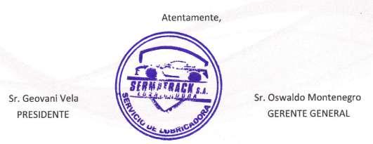 Atentamente, Ing. Zheizon Manolo Lara González GERENTE GENERAL