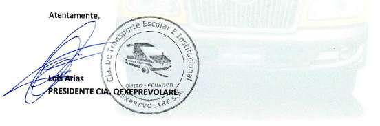 Los documentos y anexos, cumpliendo lo que dice la Ley de Compañías, se encuentra a disposición de los señores accionistas en las oficinas de la Compañía y son de plena responsabilidad de la Gerencia como Representante Legal.