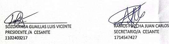CANACUAN RIVERA JUAN CARLOS Presidente CRUZ BALSECA EDUARDO DANILO Secretario