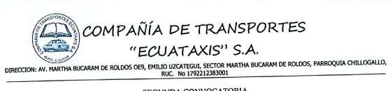 CONVOCATORIA A JUNTA GENERAL ORDINARIA DE ACCIONISTAS DE LA COMPAÑÍA DE TRANSPORTES ECUATAXIS S.A.