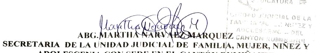 UNIDAD JUDICIAL DE FAMILIA, MUJER, NIÑEZ Y ADOLESCENCIA CON SEDE EN EL CANTÓN RUMIÑAHUI PROVINCIA DE PICHINCHA