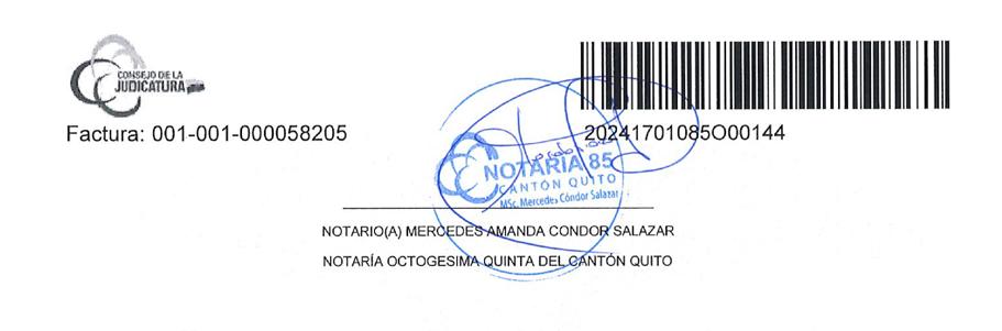 UNIDAD JUDICIAL CIVIL CON SEDE EN LA PARROQUIA IÑAQUITO DEL DISTRITO METROPOLITANO DE QUITO, PROVINCIA DE PICHINCHA. Quito, viernes 24 de febrero del 2023, a las 13h56. VISTOS: Agréguese al proceso el escrito presentado por los actores.- En tal virtud se considera: PRIMERO.- CALIFICACIÓN Y ADMISIÓN A TRÁMITE: Por cumplido el auto de sustanciación de fecha 25 de enero de 2021, se tiene que la demanda que antecede es clara, precisa y cumple con los requisitos formales de los artículos 142 y 143 del Código Orgánico General de Procesos (COGEP), por lo que se califica y admite a trámite mediante pro- cedimiento Ordinario de conformidad con lo que determina el Art. 289 IBÍDEM.- SEGUNDO.- CÍTESE: a los demandados señores GAETANO MATEO SUESCUM PÉREZ DE ANDA, MARÍA SOLEDAD PÉREZ DE ANDA DÁVALOS en calidad de MANDATARIA DEL SEÑOR CARLOS FRANCISCO PÉREZ DE ANDA y CARLOS FRANCISCO SUESCUM PÉREZ DE ANDA en el lugar señalado, con la demanda, escrito que antecede y este auto, para el efecto envíese suficiente despacho a la oficina de citaciones.- TERCERO.- CONTESTACIÓN: De acuerdo a lo previsto en el artículo 291 IBIDEM, se concede a los demandados: GAETANO MATEO SUESCUM PÉREZ DE ANDA, MARÍA SOLEDAD PÉREZ DE ANDA DÁVALOS en calidad de MANDATARIA DEL SEÑOR CARLOS FRANCISCO PÉREZ DE ANDA y CARLOS FRANCISCO SUESCUM PÉREZ DE ANDA, el término de treinta días para que contesten la demanda en la forma establecida en el artículo 151 y siguientes del COGEP, debiendo anunciar todos los medios probatorios destinados a sustentar su contradicción. por cuanto se ha proporcionado la dirección de correo electrónico de la o del demandado, la o el juzgador ordenará también que se le haga conocer a la o al demandado, por correo electrónico, el extracto de la demanda y del auto inicial, de lo cual, se dejará constancia en el sistema. Esto no sustituye a la citación oficial.- CUARTO.- Precautelando la salud de todos los sujetos procesales, conforme lo determinado en el artículo 66 del Código Orgánico General de Procesos – COGEP que respecto a las notificaciones, en su parte pertinente establece: ”Son idóneos los siguientes lugares: el casillero judicial, domicilio judicial electrónico, correo electrónico de una o un defensor legalmente inscrito o el correo electrónico personal.”, todas las notificaciones en la presente causa se realizarán únicamente de forma electrónica a los correos o casilleros electrónicos que las partes han designado para el efecto. Adicionalmente se recuerda a las partes que a partir del 11 de mayo del 2020, con la resolución 045-2020 emitida por el Pleno del Consejo entró en vigencia el acceso al módulo externo por medio de la Oficina de Gestión Judicial Electrónica a través de la página web del Consejo de la Judicatura, por medio del cual los defensores técnicos de las partes pueden ingresar con sus credenciales, a fin de verificar el contenido de los escritos digitalizados, para su conocimiento.- Al amparo del artículo 14 de la Ley de Comercio Electrónico, Firmas Electrónicas y Mensajes de Datos, se indica que la firma electrónica contenida en el presente auto, tiene igual validez y genera los mismos efectos jurídicos que la firma manuscrita; en consecuencia, no será necesario consignar la firma manuscrita en la 197170679-DFE presente actuación judicial.- CÍTESE Y NOTIFÍQUESE.- UNIDAD JUDICIAL CIVIL CON SEDE EN LA PARROQUIA IÑAQUITO DEL DISTRITO METROPOLITANO DE QUITO, PROVINCIA DE PICHINCHA. Quito, viernes 26 de enero del 2024, a las 10h07. VISTOS: De conformidad con lo previsto en el Art. 56 del Código Orgánico General de Procesos, cuya disposición se encuentra vigente de manera inmediata, cítese a la parte demandada MARIA SOLEDAD PEREZ DE ANDA DAVALOS EN CALIDAD DE MANDATARIA DEL SEÑOR CARLOS FRANCISCO PEREZ DE ANDA, CARLOS FRANCISCO SUESCUM PEREZ DE ANDA, GAETANO MATEO SUESCUM PEREZ DE ANDA, por la prensa, mediante tres publicaciones realizadas en uno de los periódicos de mayor circulación que se editan en esta ciudad; para cuyo efecto, por Secretaría, confiérase el extracto respectivo.- Precautelando la salud de todos los sujetos procesales, conforme lo determinado en el artículo 66 del Código Orgánico General de Procesos – COGEP que respecto a las notificaciones, en su parte pertinente establece: ”Son idóneos los siguientes lugares: el casillero judicial, domicilio judicial electrónico, correo electrónico de una o un defensor legalmente inscrito o el correo electrónico personal.”, en concordancia con la Resolución No. 102-2023, emitida por el Pleno del Consejo de la Judicatura, mediante la cual se resuelve priorizar las notificaciones electrónicas de todas las actuaciones judiciales, se notifica de forma electrónica al domicilio legal señalado por las partes, el presente auto. Al amparo del artículo 14 de la Ley de Comercio Electrónico, Firmas Electrónicas y Mensajes de Datos, se indica que la firma electrónica contenida en el presente auto, tiene igual validez y genera los mismos efectos jurídicos que la firma manuscrita; en consecuencia, no será necesario consignar la firma manuscrita en la presente actuación judicial.- NOTIFÍQUESE. f)
