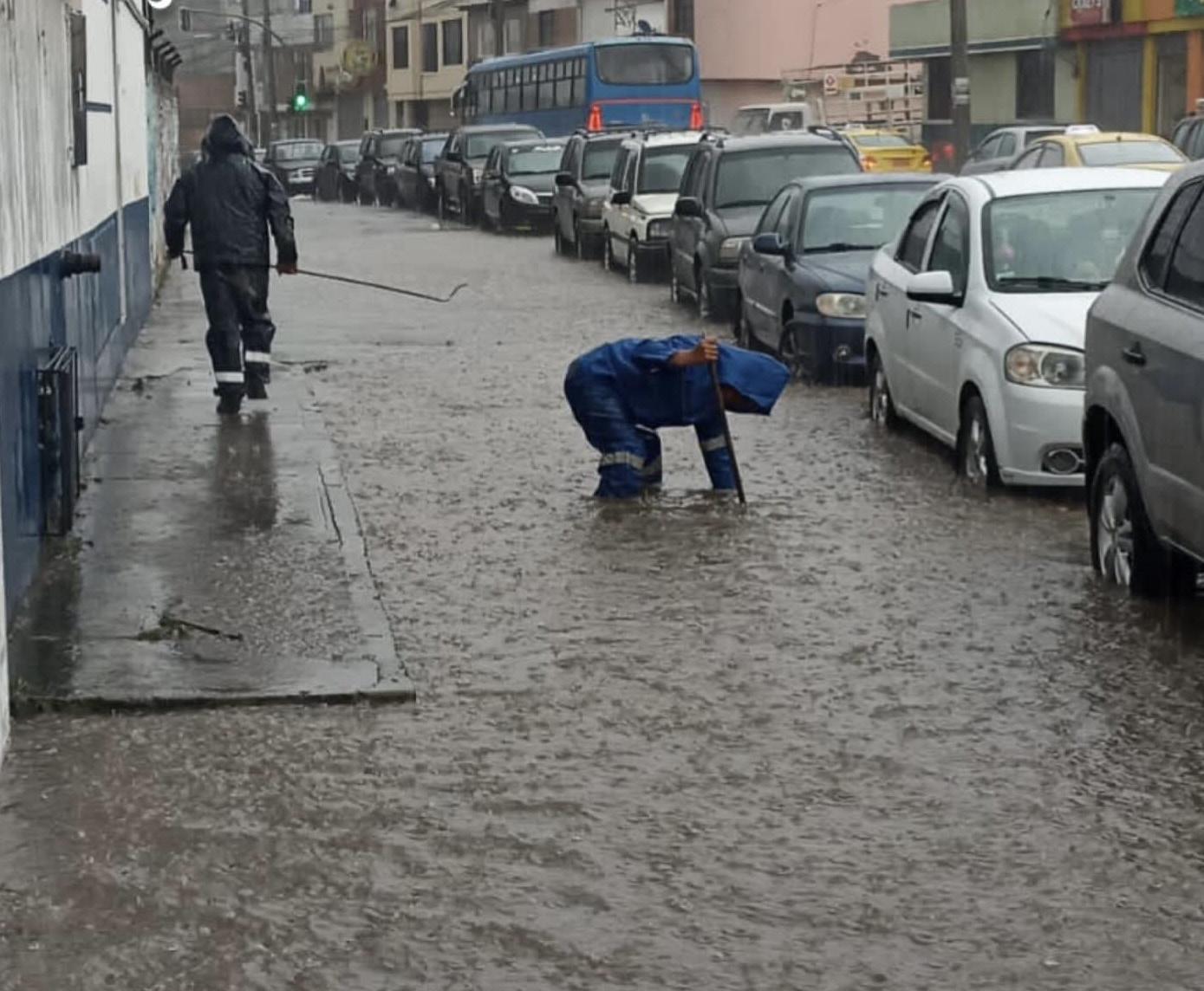 Este 25 de abril las lluvias nuevamente inundaron las calles de una veintena de sectores urbanos de Ibarra, afectando a lugares públicos como el IESS y el Mercado Mayorista.