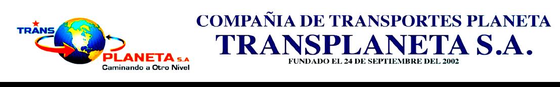 De conformidad con lo previsto en los artículos 233 y 236 de la Ley de Compañías, reformados por los artículos 41 y 43 de la Ley de Modernización a la Ley de Compañías, publicada en el Tercer Suplemento del Registro Oficial No. 347, de 10 de diciembre de 2020 y de lo dispuesto en los artículos 3 literal f) y 4 del vigente Reglamento sobre Juntas Generales de Socios y Accionistas, expedido por la Superintendencia de Compañías, Valores y Seguros, se CONVOCA a las/ los accionistas de TRANSPORTES PLANETA TRANSPLANETA S.A., a la Junta General Extraordinaria a celebrarse el martes 31 de enero de 2023 a las 09h30, en las oficinas de la compañía, ubicadas en la Av. Pedro Vicente Maldonado s/n y calle L, sector Matilde Álvarez, (Sector Guamaní) del Distrito Metropolitano de Quito, cantón Quito, provincia de Pichincha, a fin de conocer, tratar y resolver sobre los siguientes puntos del orden del día: