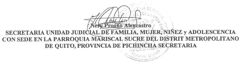 UNIDAD JUDICIA DE FAMILIA, MUJER, NIÑEZ Y ADOLESCENCIA CON SEDE EN LA PARROQUIA MARISCAL SUCRE DEL DISTRITO METROPOLITANO DE QUITO