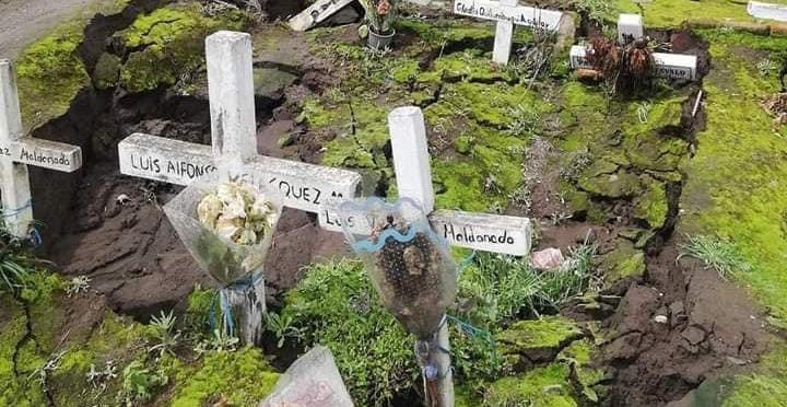 IMBABURA.- El hundimiento y las grietas que se registran por las lluvias en una parte del cementerio indígena de la ciudad de Otavalo, ubicado en la provincia de Imbabura, en el norte de Ecuador, preocupan a las autoridades locales.