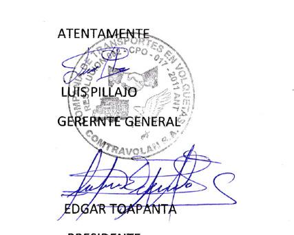 SE CONVOCA A LA JUNTA GENERAL EXTRA ORDINARIA DE ACCIONISTAS DE LA COMPAÑIA DE TRANSPORTE EN VOLQUETAS COMTRAVOLAN S.A. Conforme a lo que establece el art. 234 de la ley de compañía, acorde al estatuto social de la compañía, se convoca a los señores accionistas de la compañía COMTRAVOLAN S.A. , a la Junta General Ordinaria que se llevará a cabo el DIA VIERNES 06 DEOCTUBRE DEL 2023, a las 16H00PM(puntual) , en la sede de la misma, ubicada en la calle: AV Mariscal Sucre S46E Y ULQUÑAN, de la ciudad de Quito, Pichincha, Referencia de Ubicación: diagonal a la ex lavadora Danielito, para tratar el siguiente orden del día.