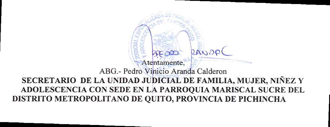 UNIDAD JUDICIAL DE FAMILIA, MUJER, NIÑEZ y ADOLESCENCIA CON SEDE EN LA PARROQUIA MARISCAL SUCRE DEL DISTRITO METROPOLITANO DE QUITO, PROVINCIA DE PICHINCHA. Quito, viernes 13 de enero del 2023, a las 12h41. VISTOS: En virtud del sorteo realizado, avoco conocimiento de la presente causa en mi calidad de Jueza de la Unidad Judicial de la Familia, Mujer, Niñez y Adolescencia con sede en la Parroquia Mariscal Sucre del Distrito Metropolitano de Quito.- Agréguese de autos el escrito y acta de anteceden.- En lo principal: [1] CALIFICACIÓN: La demanda que antecede es clara, precisa y cumple con los requisitos de ley, por lo que se admite a trámite en procedimiento VOLUNTARIO. [2] CIT-