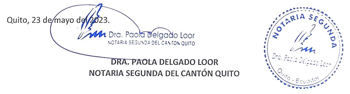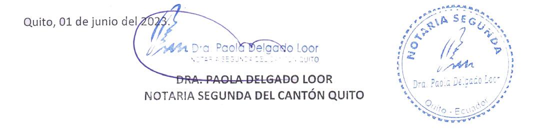 NOTARIA SEGUNDA DE QUITO: Cúmpleme poner en conocimiento del público que, mediante escritura pública, otorgada ante la Dra. Paola Delgado Loor, Notaria Segunda del cantón Quito, el uno de junio del 2023, los señores JALAL