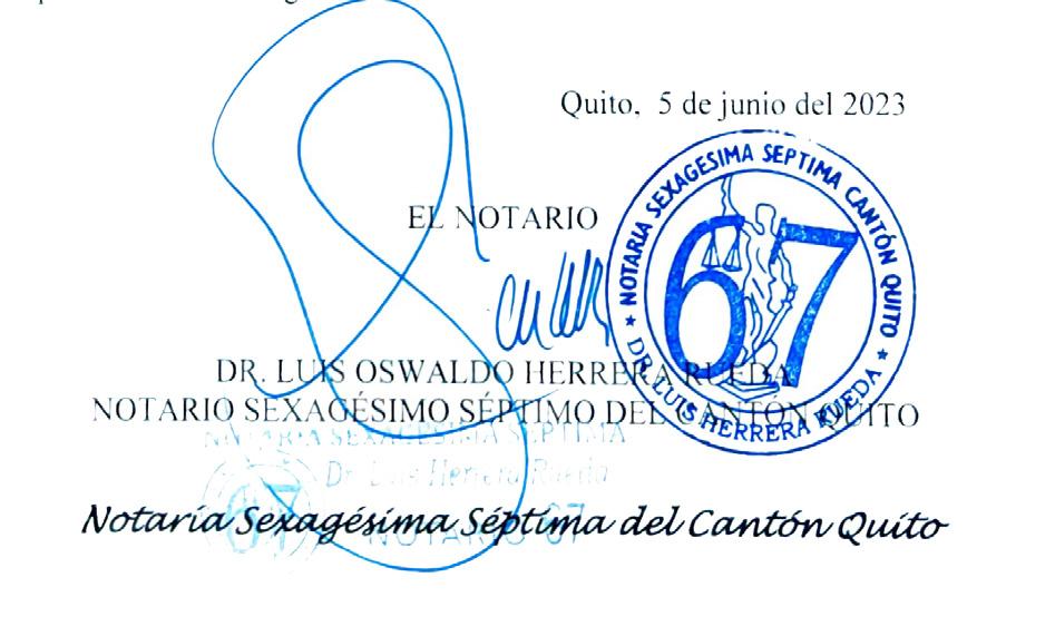 TORRES, otorgada ante la Dra. Paola Delgado Loor, Notaria Segunda del cantón Quito, el uno de junio del 2023, por el término de veinte (20) días a contarse desde la fecha de la publicación de este extracto, a fn de que las personas que eventualmente tuvieren interés en esta liquidación puedan presentar su oposición fundamentada, dentro del referido término. Particular que pongo en conocimiento para los fnes legales correspondientes.