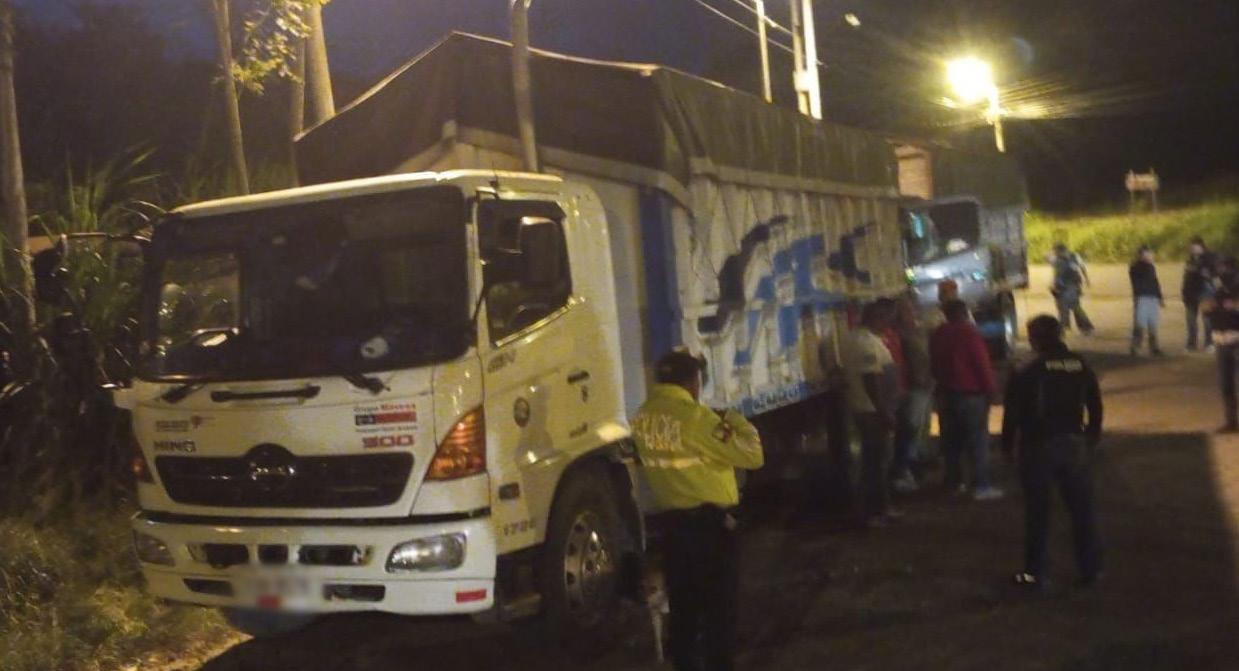 OPERATIVO. Cuando trasladaban a los detenidos y los camiones a Ibarra, fueron interceptados por casi 50 personas, quienes habían formado una barricada en la vía.